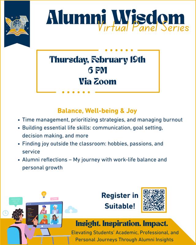 The February alumni panel will focus on the following topics: